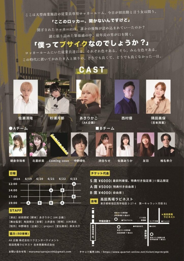 PLUS ONE 佐瀬清隆 主演舞台「ムービング・ペント・ロッカー」上映!! 「上映期間」 2024年6月19日(水)〜6月23日(日) 「会場」 高田馬場ラビネスト 「チケット販売」2024年5月3日 20:00〜